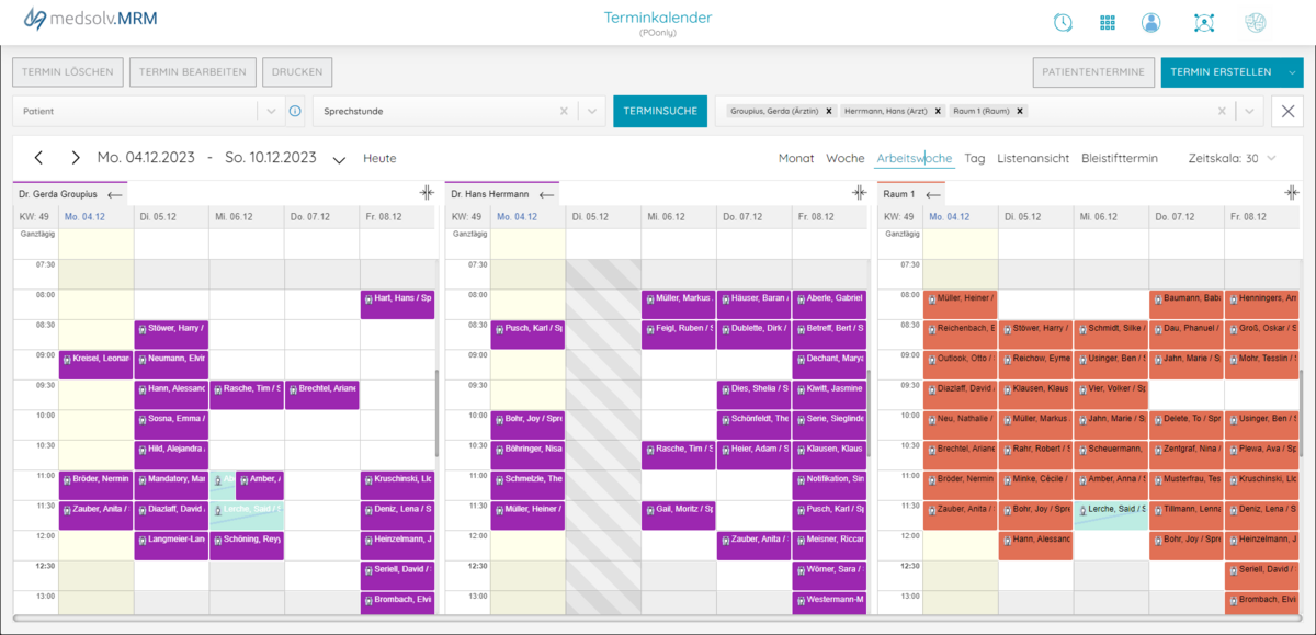 Der Multi-Ressourcen-Manager von medsolv bietet ihnen eine smarte Verplanung in Ihrer Einrichtung unter Beachtung der aktuellen Verfügbarkeit aller notwendigen Ressourcen, wie Ärzte und Ärztinnen, medizinischem Personal, von Räumen und Geräten.