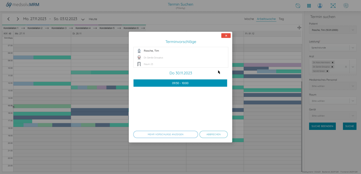 Der medsolv.MRM ist so konzipiert, dass nicht der Anwender einen Termin sucht, sondern die Applikation dem Anwender passende Termine vorschlägt.
