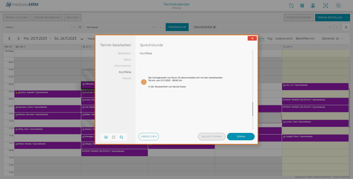Sobald Sie einen Termin bewegen, berechnet der MRM in Millisekunden mögliche Alternativen und zeigt diese an.